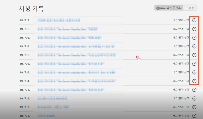 위의 사진에서 O부분에 마우스를 올리면 '시청기록 숨기기'라는 말이 뜨는데