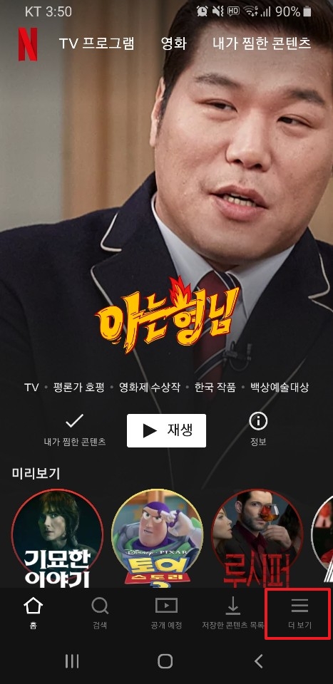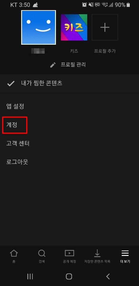 넷플릭스 앱에 들어가서 위의 사진의 빨간색 三를 클릭합니다.