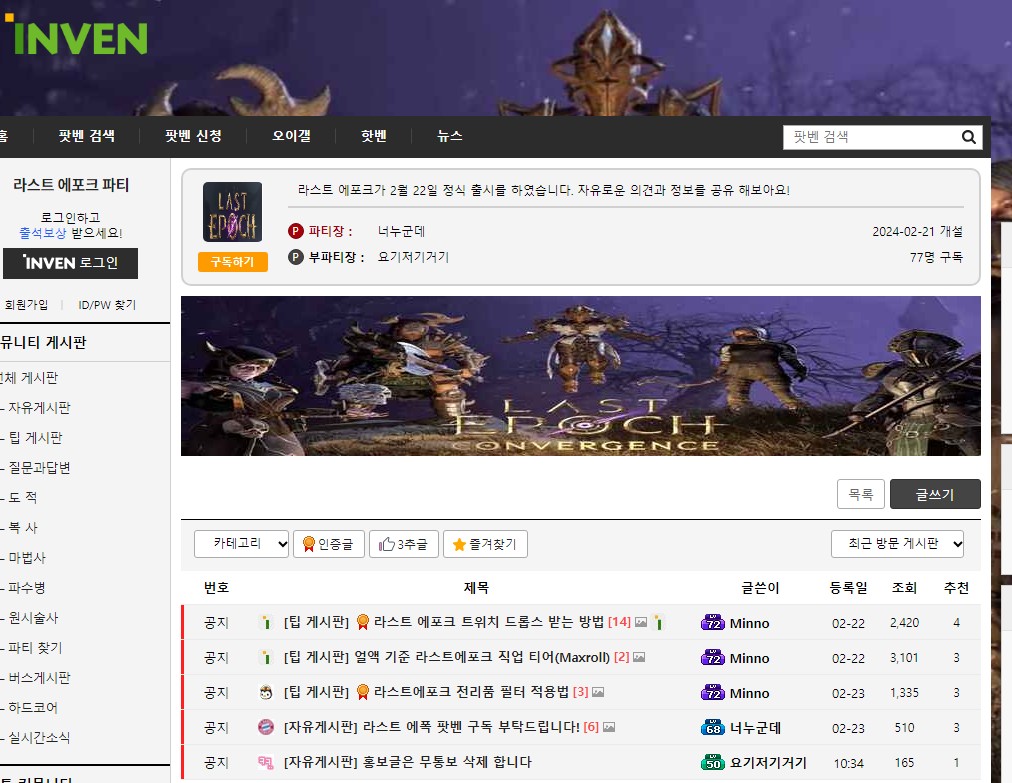 라스트에폭 인벤 게시판 바로가기 라스트에포크